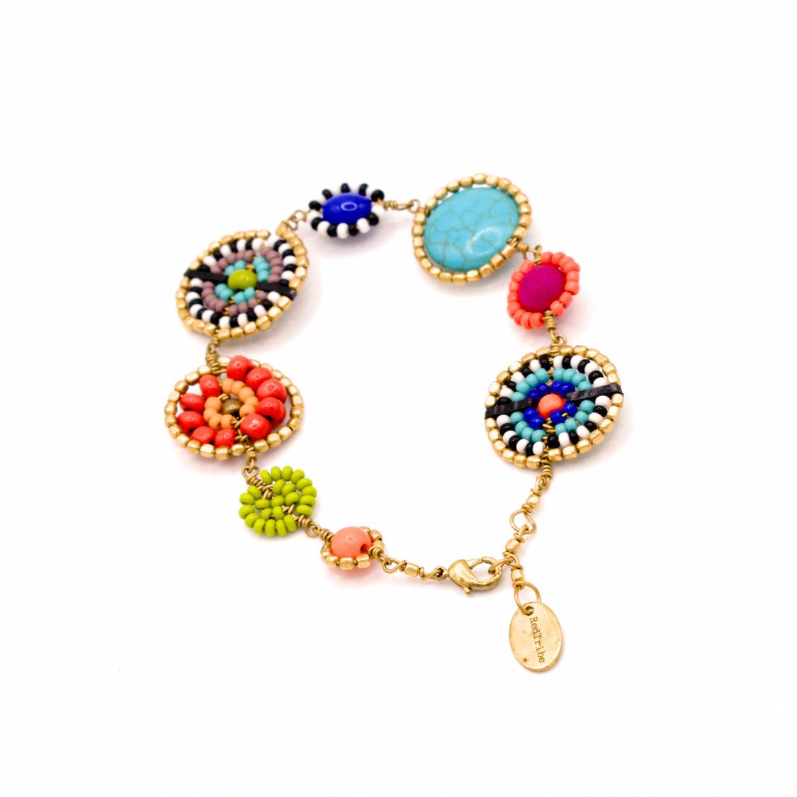 Picture this …A zebra with a brightly coloured bird resting on its back, grazing on the bright green grass, bathed in the pink and orange light of a magnificent African sunset… the colours of this stunning backdrop have inspired this uniquely vibrant beaded bracelet.