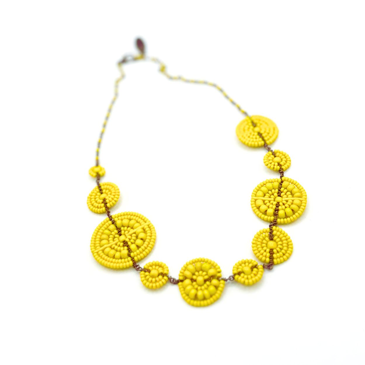 Part of our Enchipai collection, this bright yellow asymmetrical necklace embodies joyful elegance. Named after the Maasai word for “joy,” it captures the warmth of the African sun that enhances every colour it touches. In Maasai culture, yellow and orange represent the fire at the heart of the home—a symbol of hospitality and the joyful welcome offered to every guest.